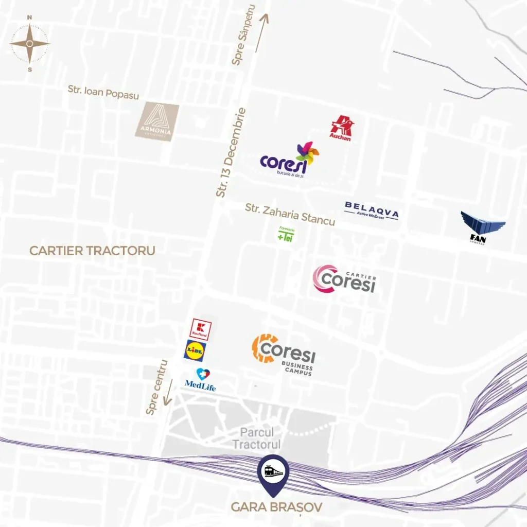 Armonia Residence este situat pe strada Ioan Popasu NR.9 în cartierul Tractorul. Cartierul s-a dezvoltat în ultimii ani devenind un centru de interes pentru orașul Brașov și fiind cunoscut pentru accesibilitate la zona de business, instituții de învățământ, centre comerciale și de relaxare.